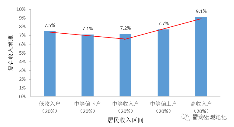 图5:M型收入结构-2017年中等偏下户和中等收入户居民收入增速最低