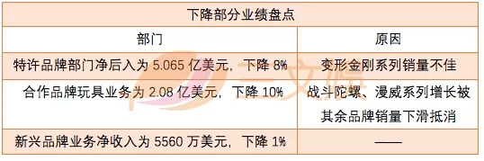 具体到孩之宝自身业务来看,与2017年第二季度相比,孩子宝业绩下滑的主要原因在于变形金刚系列玩具销量不佳、合作品牌玩具收入下降、新兴品牌业务净收入下降。