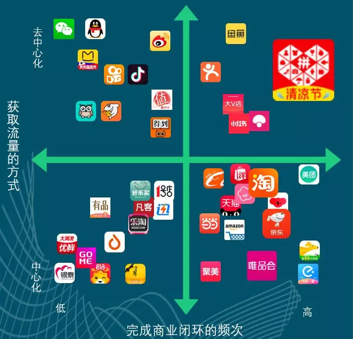 中心化模式的另一个弊端是获客成本。2015年,既有的电商品牌或者出于战略懒惰,或者出于战略优先级忽略了所谓的“小镇青年”“银发一族”“五环外人群”。其实,他们就是“先互联网起来一代人”的同族兄弟姐妹,父亲母亲舅舅婶婶,身边早晨六点第一班地铁上下班的人。