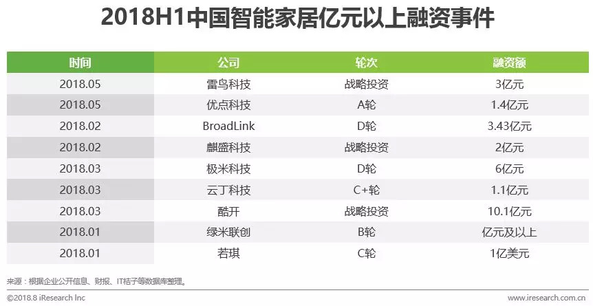 ▌中国智能家居:投融资情况