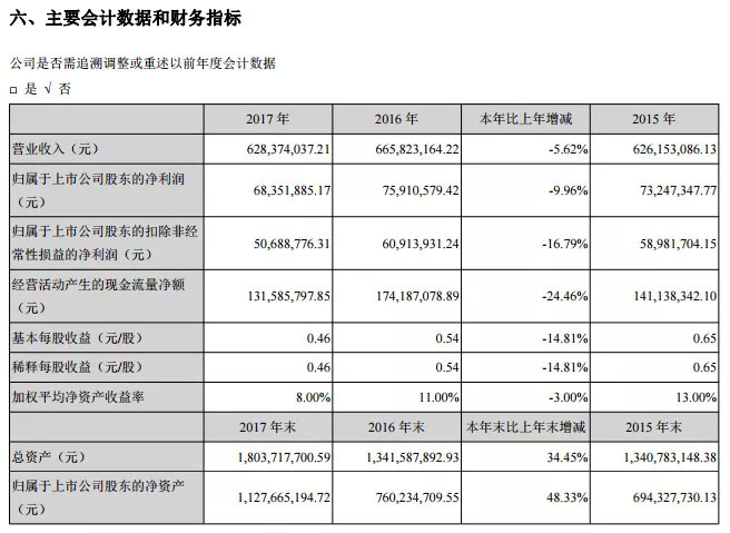 2017年年报是其“回归”A股以来交出的第一份“成绩单”,营收、净利双双下滑。