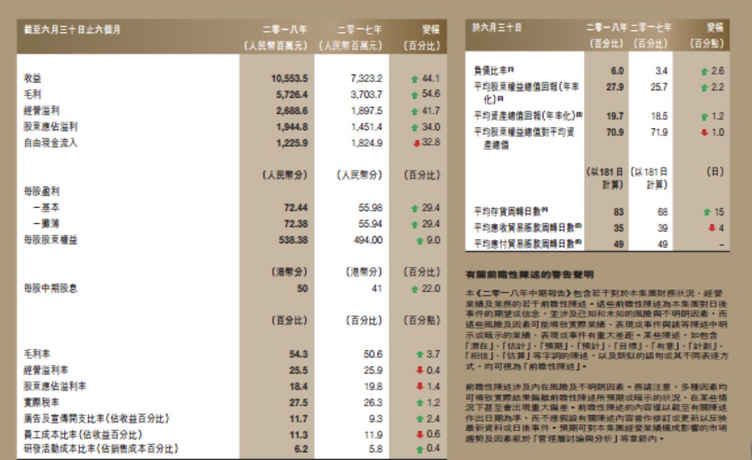 而根据报告,在上半年,安踏实现收益105.535亿元,同比增长44.1%;毛利达57.264亿元,毛利率高达54.3%,同比增长3.7个百分点;股东应占溢利达19.448亿元,同比增长34.0%。