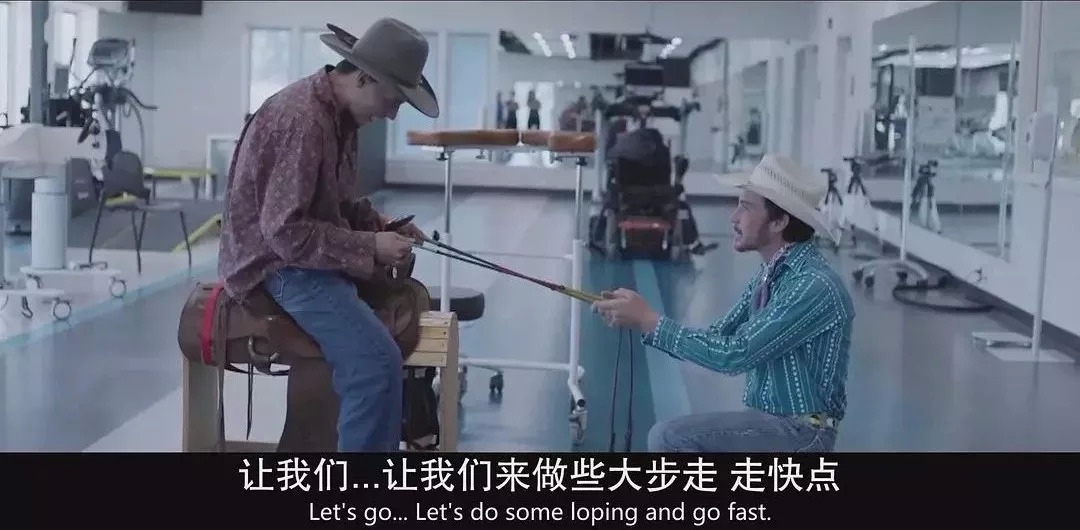 他同样会一次次前往医院看望老友,耐心地用跨鞍控缰的方式,帮助莱恩做复健,充满了人情味。