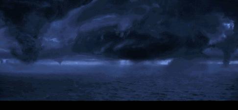 影片大肆渲染的陨石撞地球,大海中漂浮的北极熊,海面上笼罩的龙卷风漩涡,营造出了强烈的世界末日感。