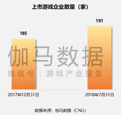 伽马数据在《2018上市游戏企业竞争力报告》中称,截至2018年7月31日,中国上市游戏企业达到191家,较去年年底增加了六家,这主要与今年多家企业成功赴港上市有关。其中,A股游戏企业占据79%。目前,仍有二十余家企业正在申请上市,其中预计港股上市游戏企业数目将会进一步提升。