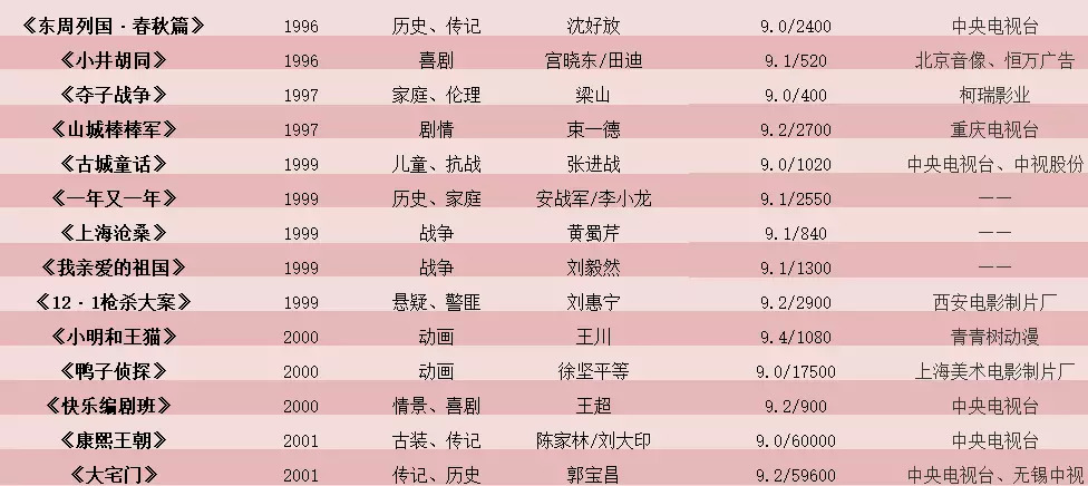 除了动画剧、历史正剧、抗战剧之外,家庭史诗剧(《大宅门》《闯广东》等)、细说古装剧(《琅琊榜》《大宋提刑官》等)、情景喜剧(《我爱我家》《武林外传》等)均有较好的表现,而在2015年、2016、2017年大火的玄幻剧则无一作品上榜。