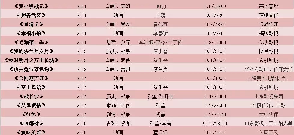 此外,华谊兄弟、华录百纳是仅有创造过9分神剧的上市公司。