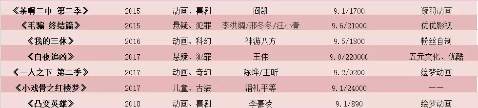 比较意外的是,按照类型划分,其中动画剧数量最多,达到26部。