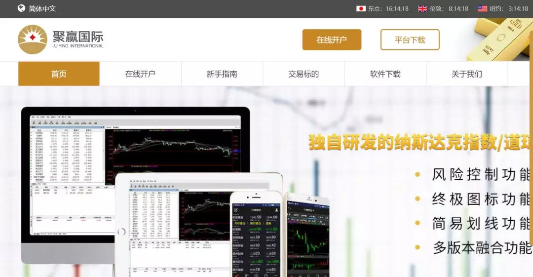 汇商传媒(Forexpress)在登陆该公司官网后发现,聚赢国际官网制作相对简单,仅提供中文语言服务,产品介绍也非常笼统;提供的交易标的主要为指数、外汇和原油;交易软件也并非全球主流的MT4/MT5交易平台,而是一款名为“聚赢交易软件”的平台。