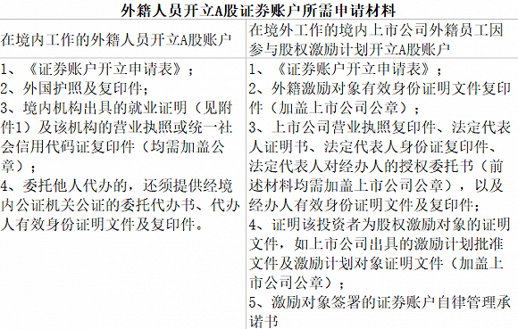 当晚,中国结算也发布通知,明确可开立A股证券账户的外籍人员范围及开户所需提交的申请材料。