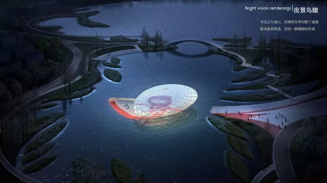|兴隆湖书店建筑创意设计竞赛第一名、慕达建筑 MUDA-Architects 参赛方案效果图。