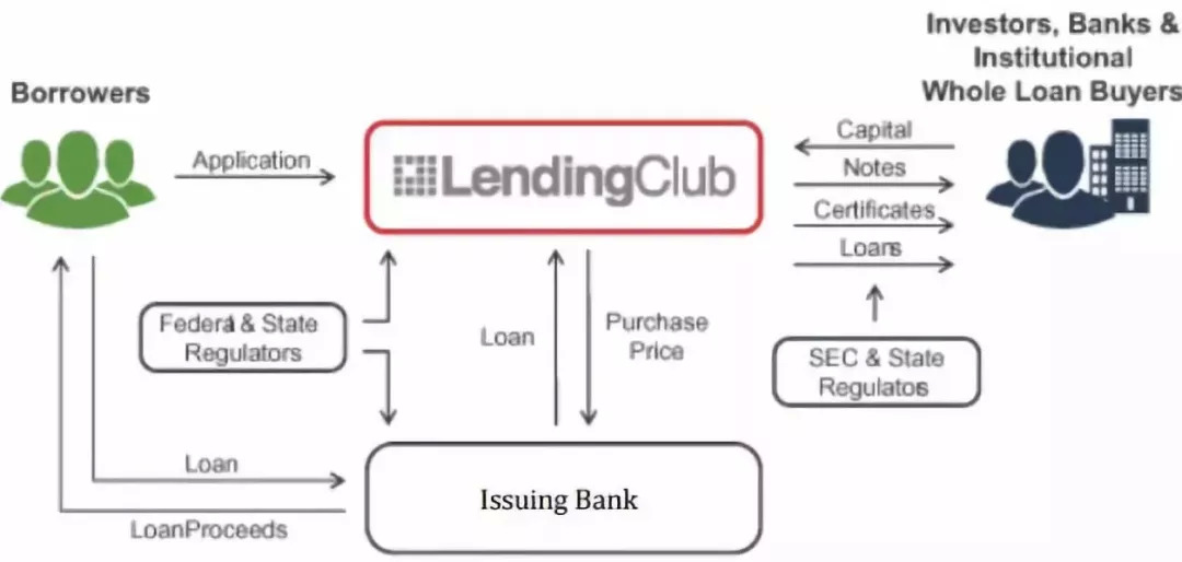 ▲“LendingClub”给投资者的金融产品由另一家商业银行提供,平台仅负责审批定价。