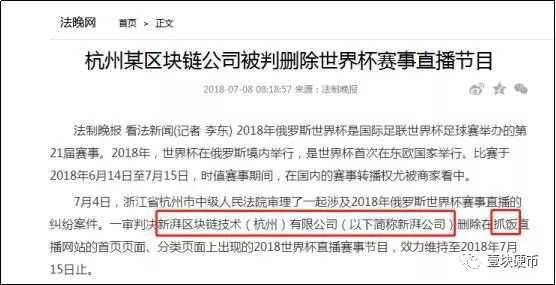 但就在世界杯开赛期间,“抓饭”却因侵权被起诉,新湃区块链技术(杭州)有限公司被判删除世界杯赛事直播节目。