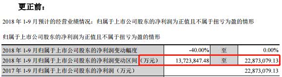 更正前,因为报表单位元和万元换算错误,巨力索具前三季度的预计净利润直接多了4位数,这……报表也做得太粗心了吧。