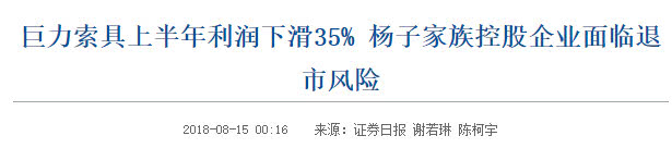 近日,巨力索具披露了2018年半年报,这家上市公司备受关注,很大原因在于公司boss之一为明星杨子,其第二任妻子为黄圣依,二人的八卦多次成为娱乐版头条。