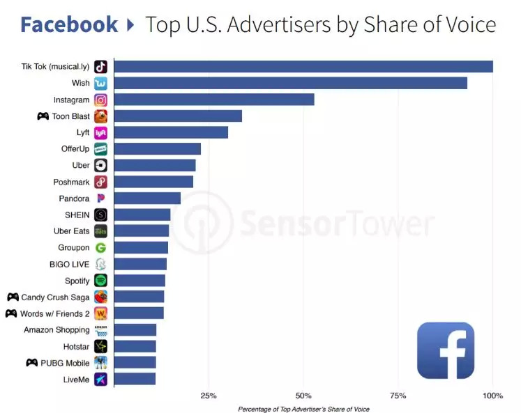 美国Facebook平台TOP20广告主占有率排名