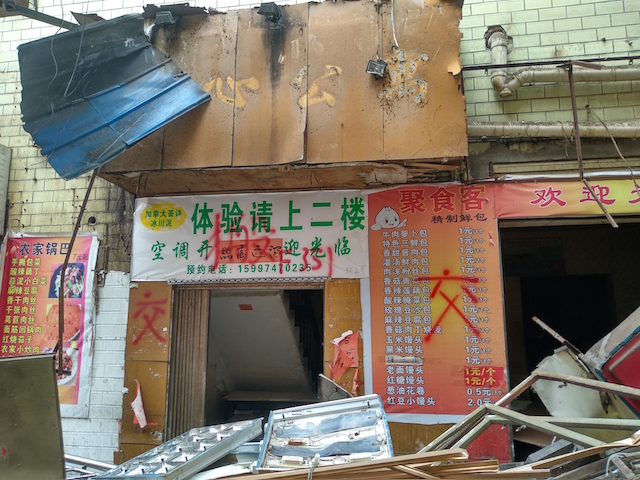 而网吧、理发店、美甲店、KTV、烧烤店全部倒闭或搬迁,仅剩的2家室外台球厅门可罗雀。小何西村赖以成名的夜生活不复存在。在这个夜晚,靠东那条主路上,三只狗、两只猫在建筑垃圾之间游走。不久之后,它们将是这片土地上真正的新主人。