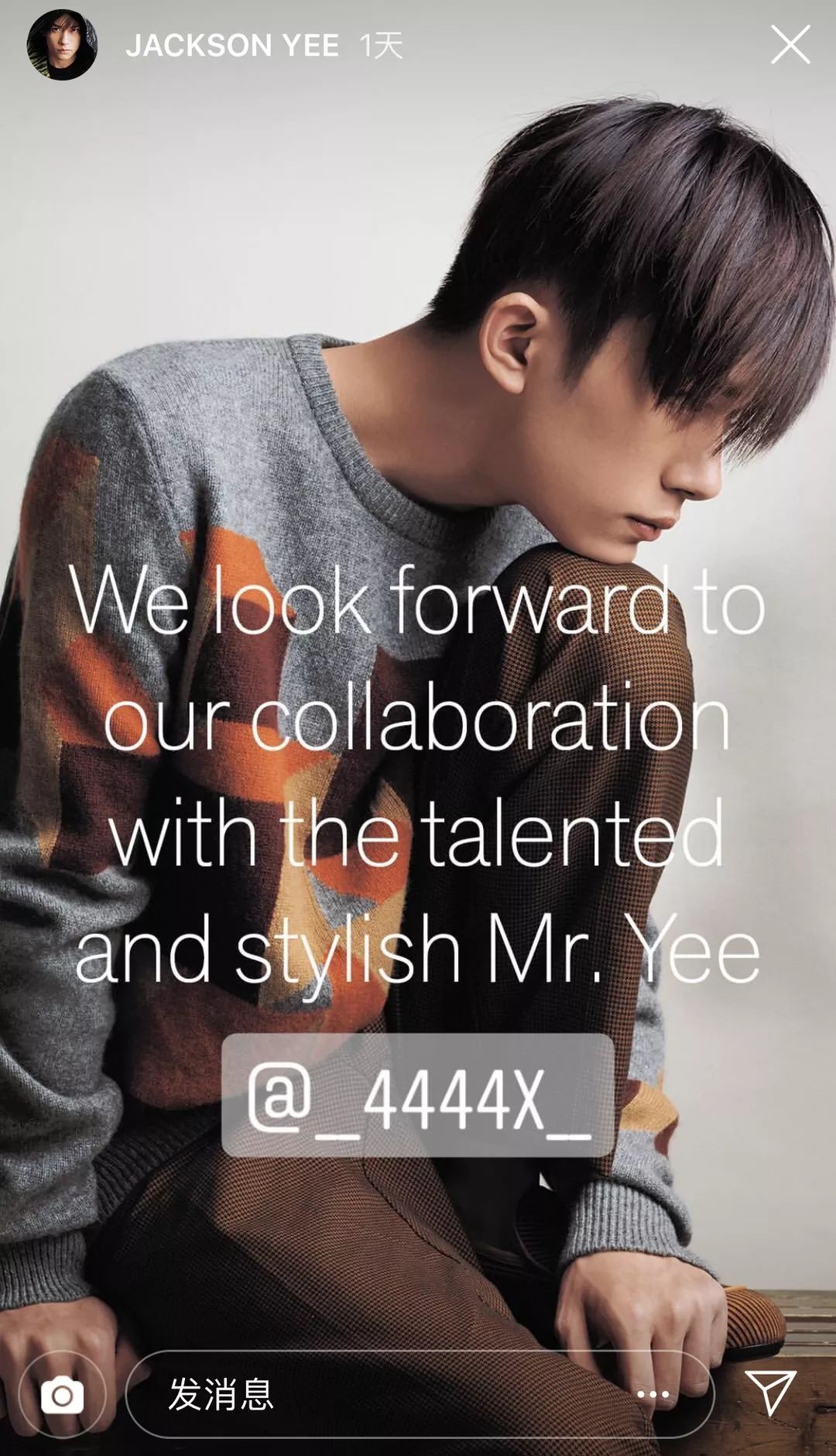 同样在Instgram上,这个英文名称叫做Jakson Yee的18岁男孩儿也与这个中文名叫做葆蝶家的意大利奢华品牌紧紧地联系在了一起。