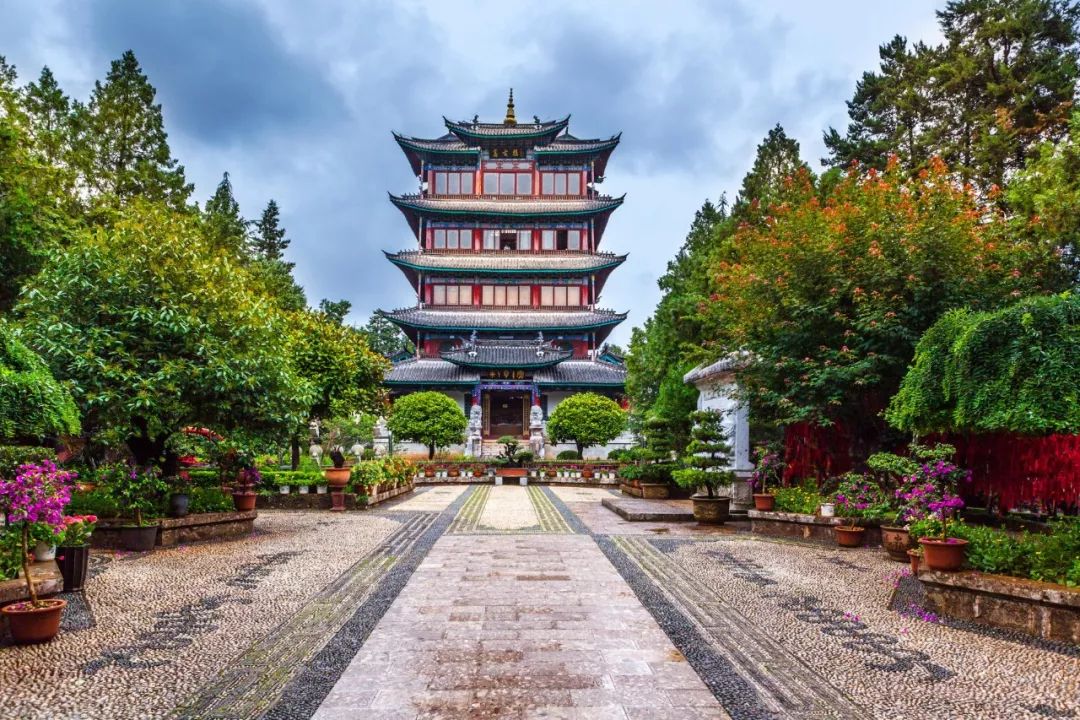 登上大研古城的最高点,木府后花园的狮子山,不仅能够俯瞰木府乃至整个古城的布局,山上还有一座高约33米的万古楼,上面密布着12,600个纳西族风格的龙头雕塑,也是丽江的标志性建筑。