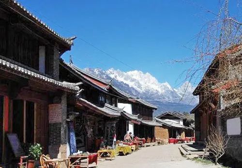 从万古楼看出去,可以远眺纳西人的神山——玉龙雪山,据说那是纳西族保护神“三朵”的化身。纳西人每年要过“三朵节”,以祭祀自己的保护神。当地人会聚集在广场上载歌载舞,以庆祝这个神圣的节日。