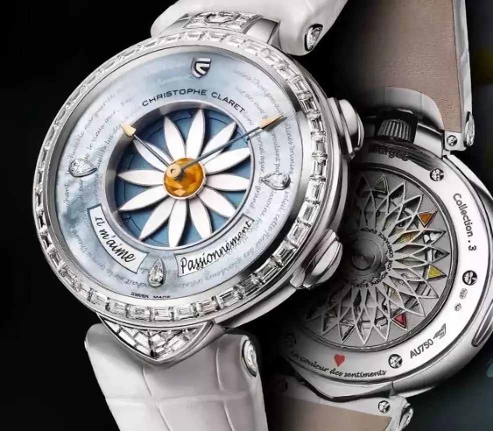 Margot腕表由独立制表师Christophe Claret创作,通过一个巧妙的机制来预测爱情的谜底。每按一次表壳2时位置的按钮,不可预期地会有一片或一对雏菊花瓣坠落,消失在表盘上。接下来,表盘4至5时位置的视窗会随机出现以法文书写的答案——Un peu(一点点)、beaucoup(非常)、passionnément(激情)、à la folie(疯狂)、pas du tout(一点也不)。