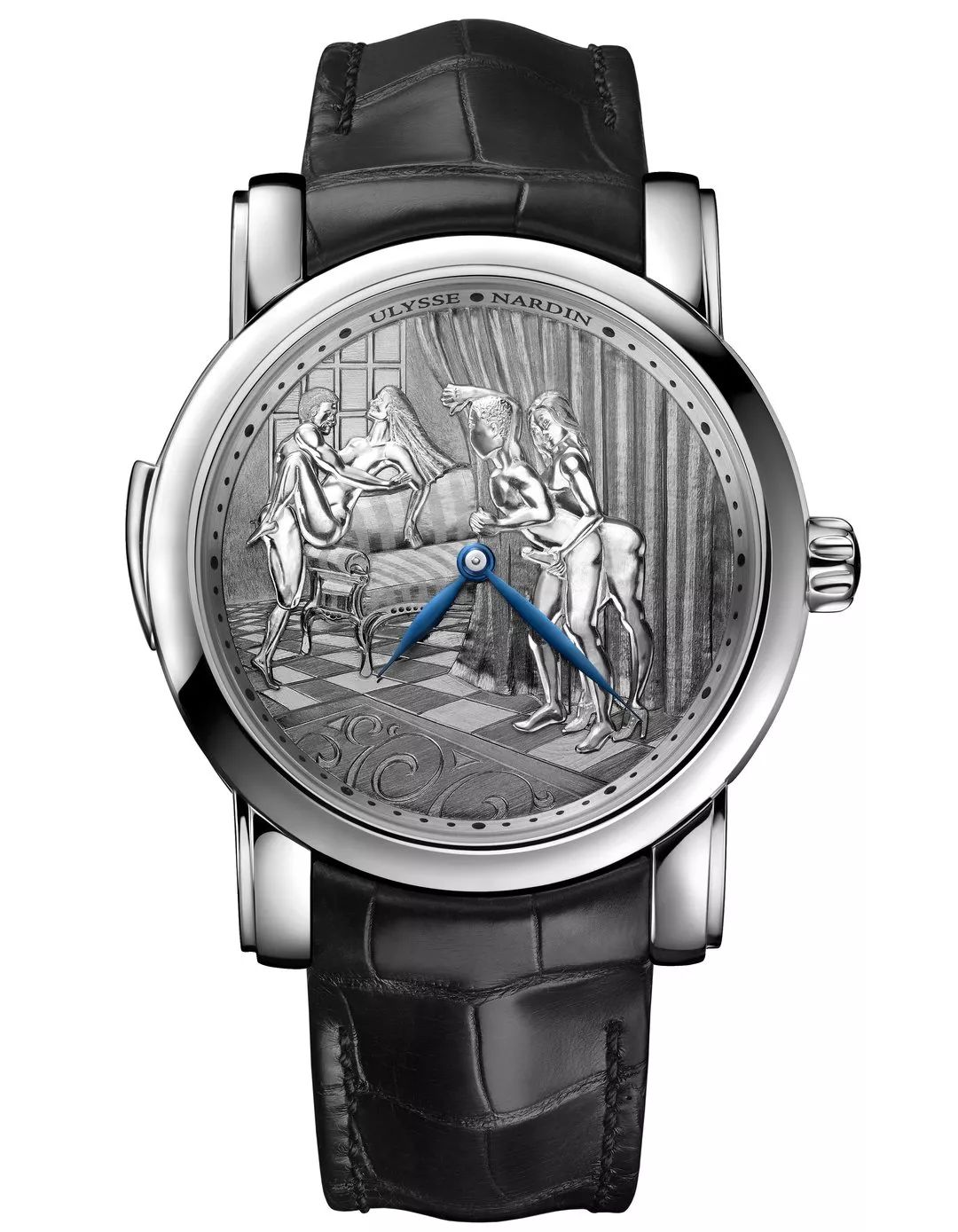 这样火辣辣的描述就让你心跳加速了?相比接下来的这枚腕表,这些言语上的挑逗就只能算是小儿科了。雅典(Ulysse Nardin)的经典系列窥视者活动人偶三问报时腕表,化口号为行动,在今夜上演激情实战动作片。