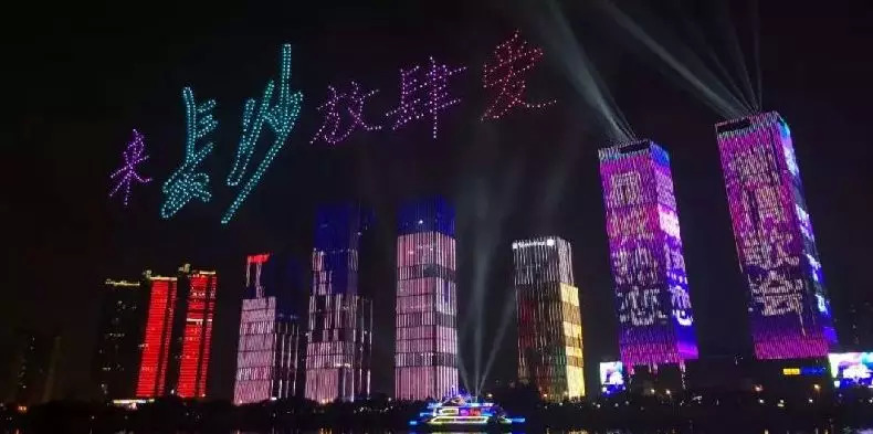 湘江两岸的夜景、777架盘旋在空中的无人机、一场精彩绝伦的璀璨灯光秀,这一晚的橘子洲头,浓情蜜意尤甚。