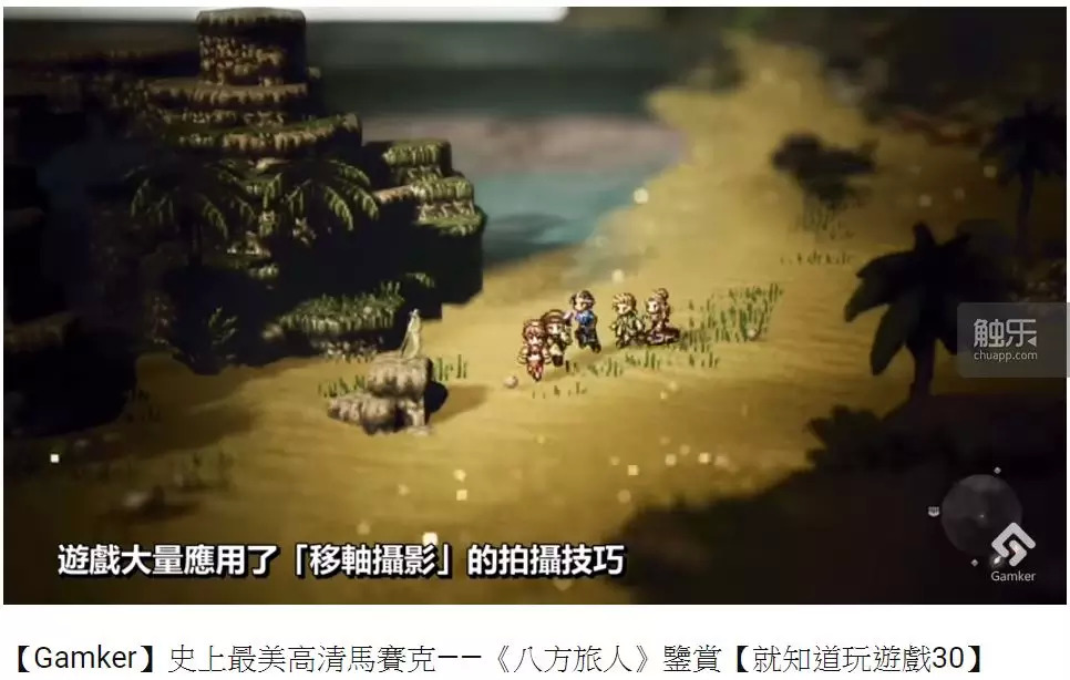 我们同行“Gamker攻壳”前天(8月13日)发布了《八方旅人》的鉴赏视频,美术出身的主持聂俊,在前半段满怀感情地称赞并且分析了本作在营造“HD-2D”这种崭新的像素画风的努力,评为“看似复古、看似简单,但细看后会发现无数细节,无比精致的艺术品”。