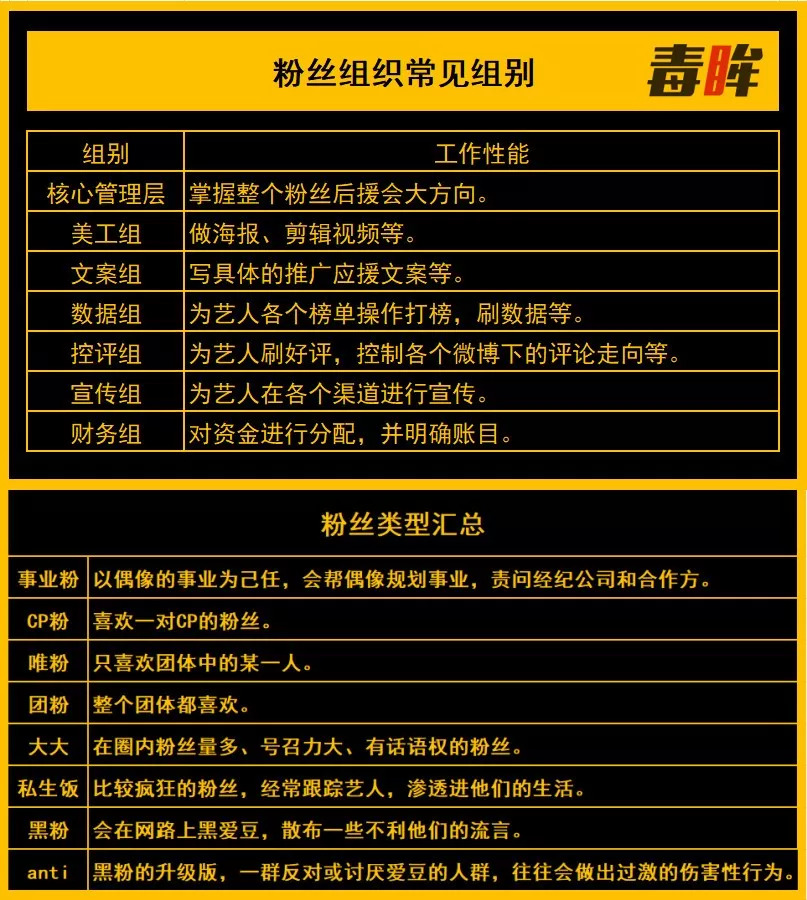 这样的组织不仅存在于火箭少女101和蔡徐坤饭圈,每一个偶像都拥有属于自己的粉丝系统——常规构造包括一个官方认证的后援会,多个“私人“站子,它们拥有核心管理层、美工组、文案组、数据组、控评组、宣传组、财务组等多个部门,俨然一个功能完善的公司。这可能是老一辈追星的粉丝无法想象的局面:地域和时间性完全消失,粉丝在无际的互联网上随时扩张和聚集,一切都变得更有效率。