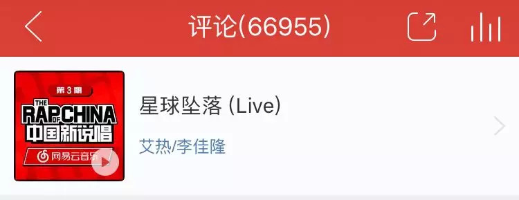 第一期是《儿子娃娃》、第二期是《Three Pass》、第三期是《星球坠落》、第四期是《Young OG》、第五期是《追梦》,第六期是《Champ》。这些在新说唱的舞台上表演的歌曲从网易云音乐飙升榜的榜首开启了高速圈粉之路。截至目前,那吾克热《儿子娃娃》、3Bangz《搭讪指南》、《制作人cypher》、那吾克热&ICE《Three Pass》、艾热&李佳隆《星球坠落》、吴亦凡《Young OG》在网易云音乐热评均超过万条。其中《星球坠落》更是随着节目的热播获得了近7万条评论。