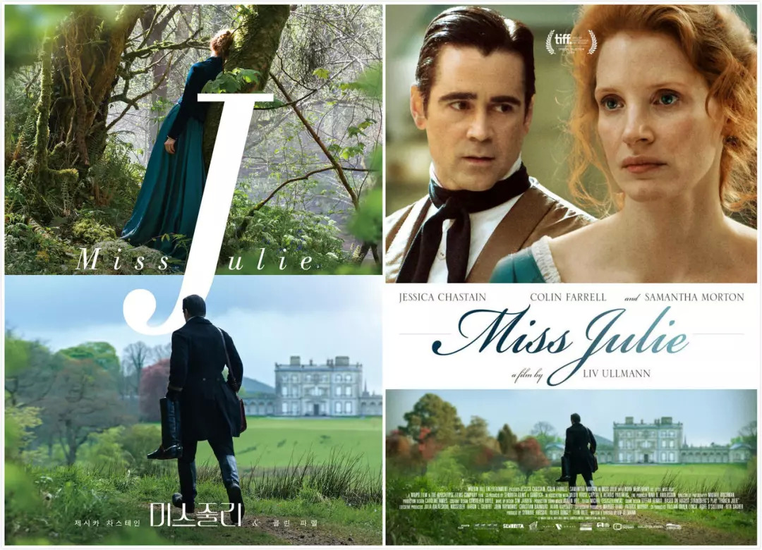 《朱莉小姐》(Miss Julie)主海报:海报的构图很特别,大写字母J作为主视觉贯穿画面,简单而有力,虽然主演锤哥和劳模姐并没有露面,但还是让人印象深刻。而右边原版海报的设计更为传统,主打明星。