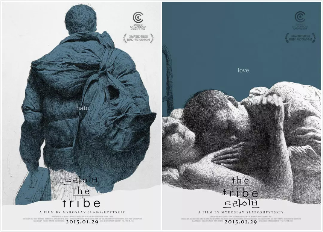 更有意思的是,“审查”有时也会催生出很棒的设计创意。《女性瘾者》对原版海报的模糊处理让人叫绝,而《聋人部落》对画面中尺度较大部分进行的手绘加工,意外的令画面更具艺术质感。