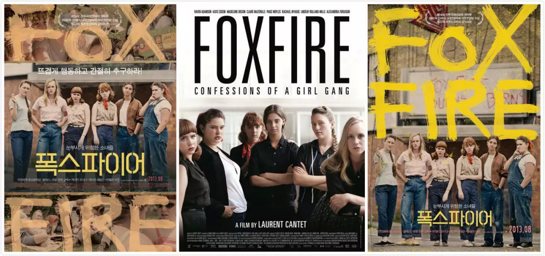 《狐火》主海报:韩国主海报选用了一张不同于法国原版海报的剧照,复古滤镜不禁让人联想到韩国佳作《阳光姐妹淘》。而英文片名的设计也参考了电影元素,相比原版亮眼太多。