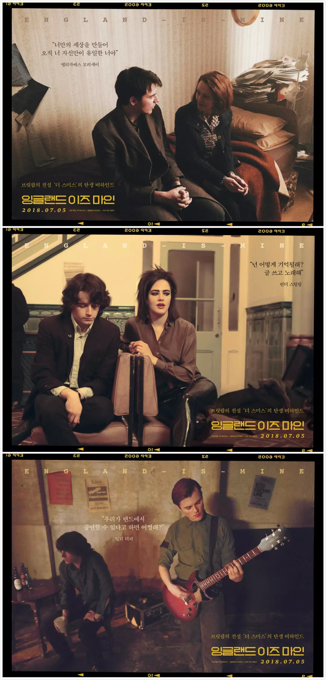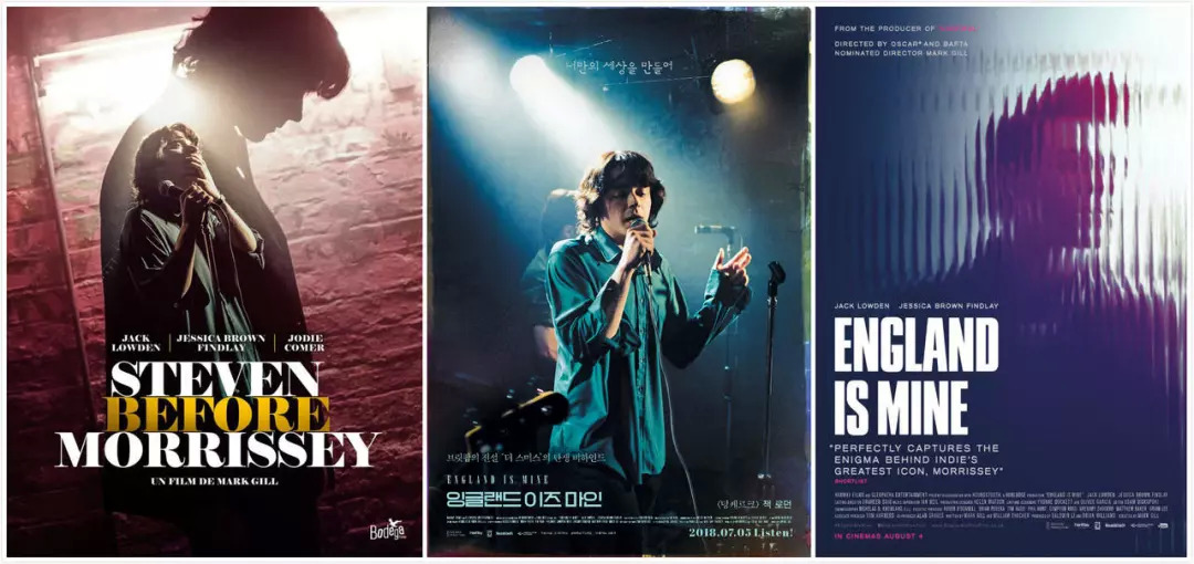 《我的英格兰》(England Is Mine)主海报:左侧为法国海报,右侧为英国海报,中间是韩版海报。这是一部关于英国史密斯乐队(The Smiths)主唱莫里西(Morrissey)的传记电影,如果你是个迷妹,相信你一定会更喜欢韩国版海报。