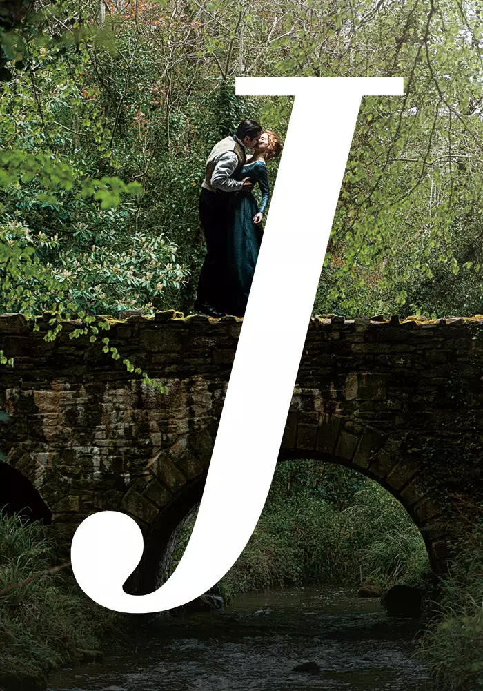 《朱莉小姐》(Miss Julie)特别版海报:画面中的人物在字母J后面若隐若现,这个调调很是文艺了。