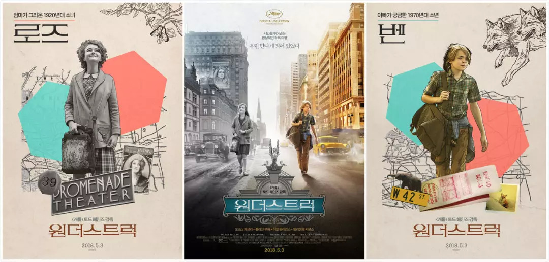 《寂静中的惊奇》:影片的主海报(中)沿用了原版海报的设计,但左右两张角色海报则采用了全新的设计,用手绘元素和剧照实景拼接而成,别具匠心。