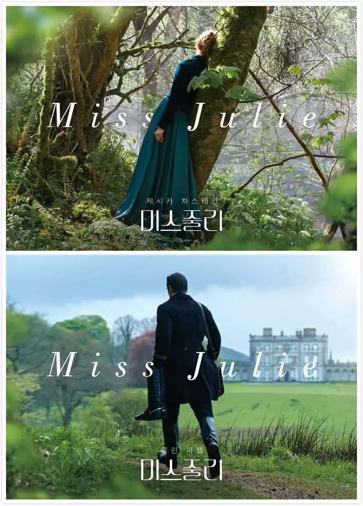 《朱莉小姐》(Miss Julie)角色海报:主海报拆分开来就变成了两款角色海报。劳模姐的那款角色海报构图讨巧,人物倾斜的身影与片名字体相映成趣。