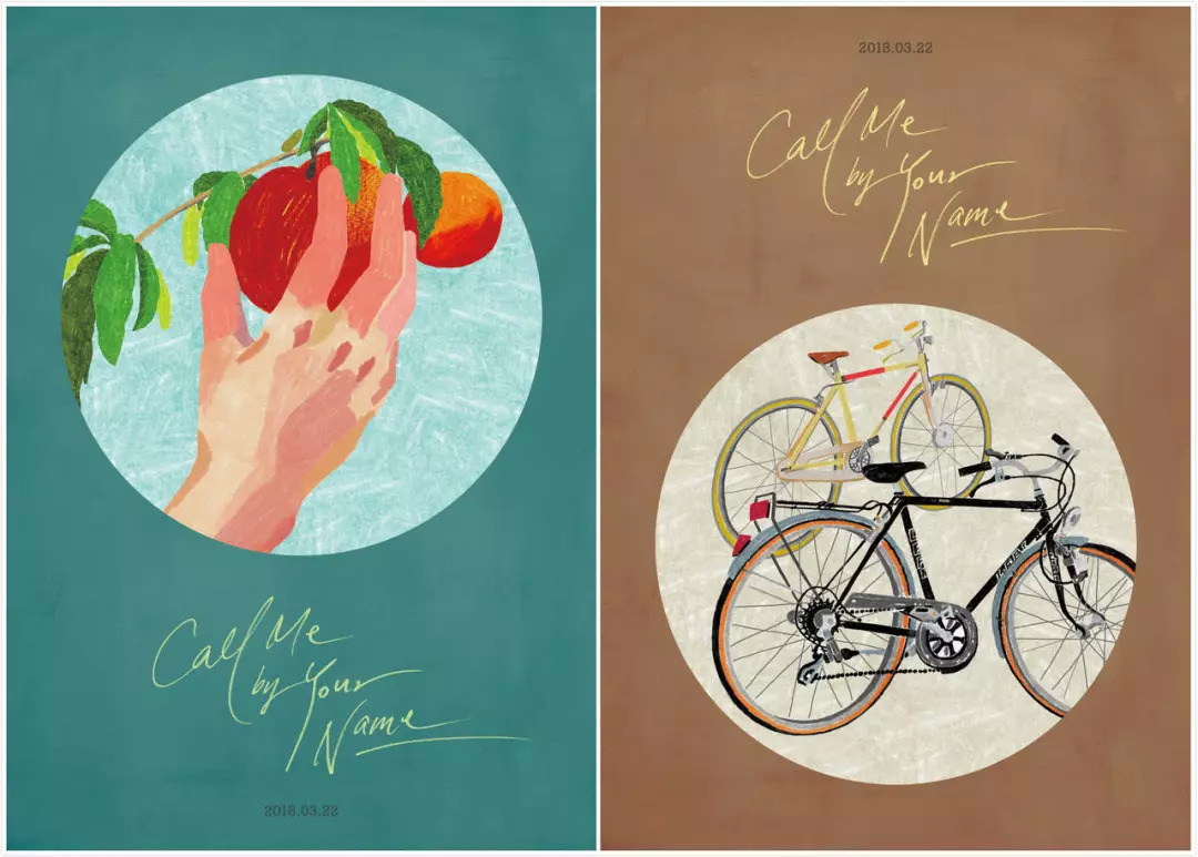 《请以你的名字呼唤我》手绘海报:桃子和自行车,所有看过电影的一定都懂!