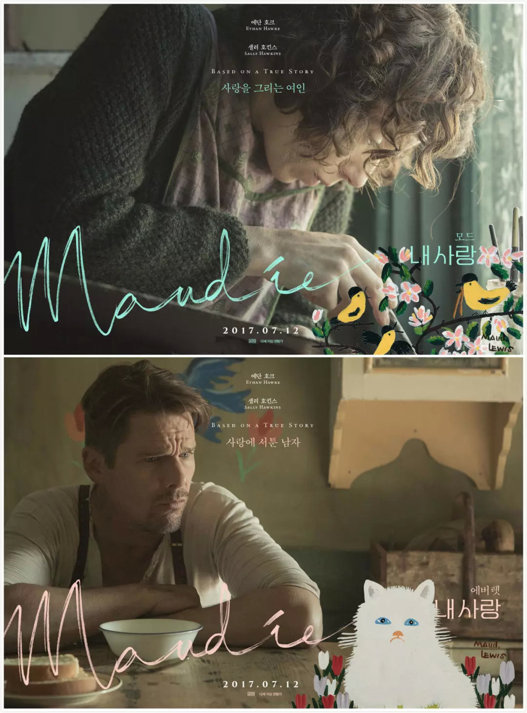 《莫娣》明信片海报:莫娣画笔下的大白猫就是伊桑·霍克本人了,哈哈~