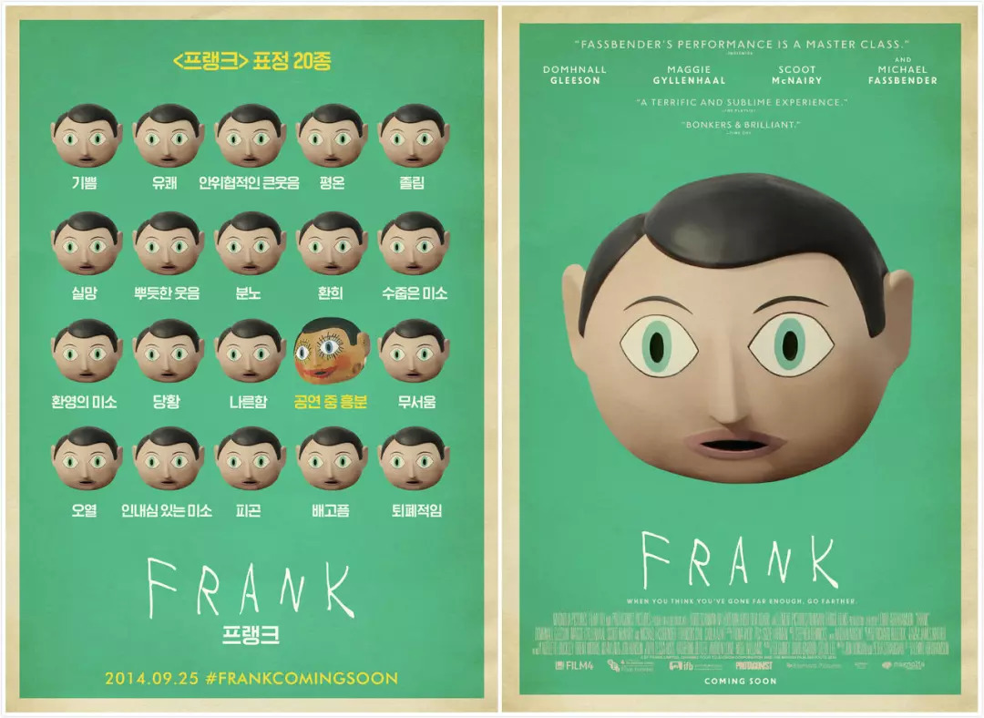 《弗兰克》主海报:左边的韩版海报带你一次性领略弗兰克的20中表情:开心、愉快、失望、激动、愤怒各种表情…最与众不同的那款是“演出过程中的兴奋”.......韩国设计师又在夹带私货了