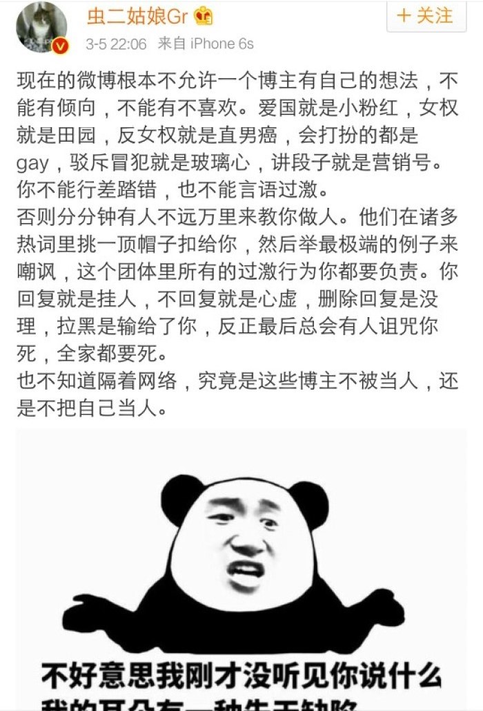 如果对方有特别喜欢的国产影视作品、明星,盖上“水军”、“脑残粉”的章,足以瞬间点燃他们的怒火;▼