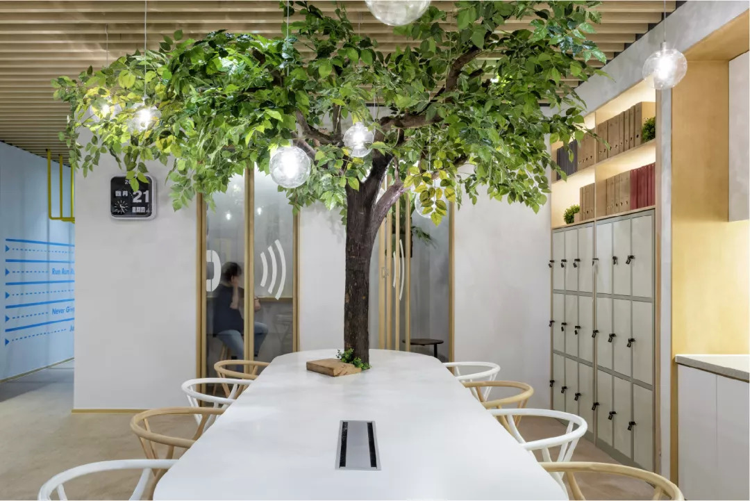 设计师还设计了三个独特的“氧气胞”,将茶水间、卫生间、打印间、手机电话亭结合在一起,既可以休憩、用餐,又不打扰办公区域的安静氛围,保证了办公区的工作状态并将打扰降至最低。