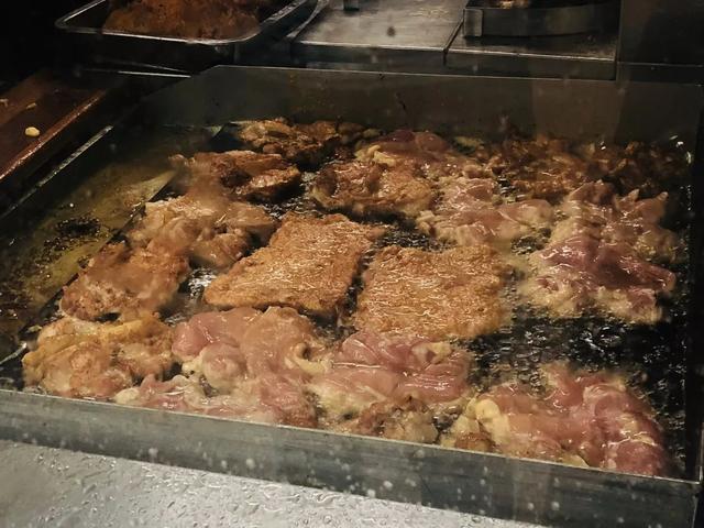 店门口就是透明玻璃包裹的煎排的地方,几十块鸡排一起开煎,香味四溢,十分诱人!