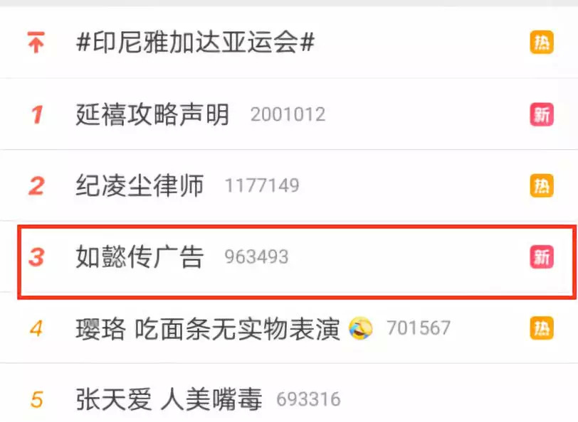 “如懿传 广告” 的热搜话题也迅速飞升攀至微博热搜榜第三,谁也没料到,开播首日第一个引发探讨的话题竟然是贴屏广告。