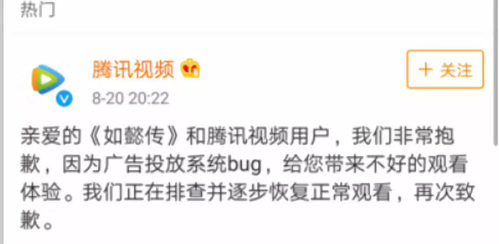 而半小时之后,腾讯视频才反应过来,在微博进行道歉,表示是系统bug,已经进行修复。然而在这条微博下面,各路观众的评论却显示了极大的不满。如此迟缓的危机公关速度和这么明显的播放问题发生在播出首日,让一众对《如懿传》满怀期待的观众难以接受。