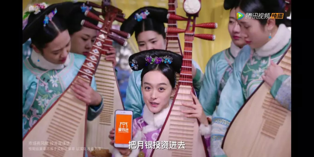 剧中还设置了名为“如意良辰”的中插广告时间,第一集的小剧场里,妃子打扮的女子们手捧麦吉丽护肤品,表示着如何通过“素颜美”吸引皇上喜爱,不免打断观众完整的看剧情绪。而在之后的几集中,派派APP、爱钱进APP、感冒药等产品也都陆续承包了中插剧场。品牌种类还是热衷搞中插的老几样。