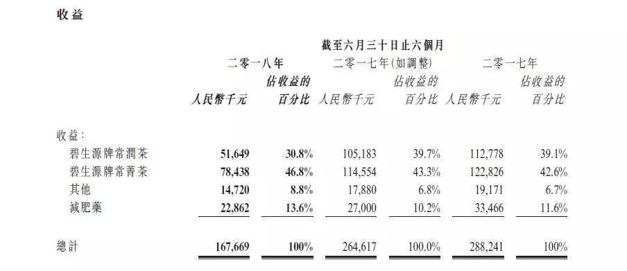 以2018年上半年为例,碧生源牌常润茶及碧生源常菁茶分别实现收益约为5164.9万和7843.8万元,收益占比各为30%和46%左右。