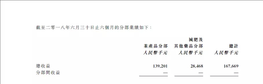 从收入构成上来看,2018年上半年,碧生源旗下茶产品分部、减肥及其他药品分部分别实现收益约为1.39201亿和0.28468亿元;和去年同期2.54775亿和0.33466亿元相比,都呈现明显下滑态势。