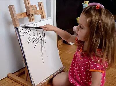 ▶Ruth Oosterman任由女儿在画布上随心涂抹,就算她的小手将碳线涂在了画板上也从不纠正。