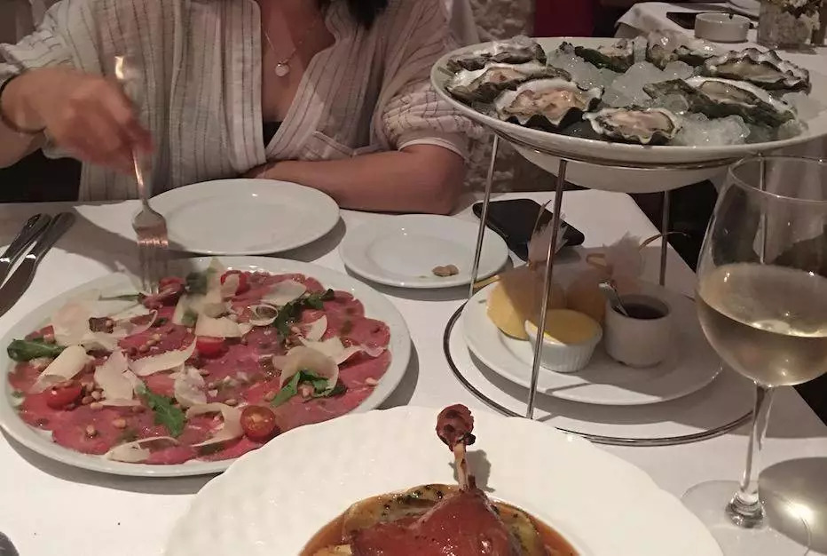 十天之后,我们在傍晚回到了起点卡萨布兰卡。天色未暗,房屋外墙上的涂鸦让这座城市有了一些色彩。我们拼了一辆出租车穿越老城小巷,前往一家小有名气的法餐馆。客人络绎不绝,都在等待日落开斋后上工的厨师为大家送上新鲜的生蚝。老板不停道歉解释,由于斋月时期,厨房出餐比较慢。让人最欣慰的,该是离开前的最后一餐,酒还是准时倒上了,生蚝的味道也不错,而且足够便宜。